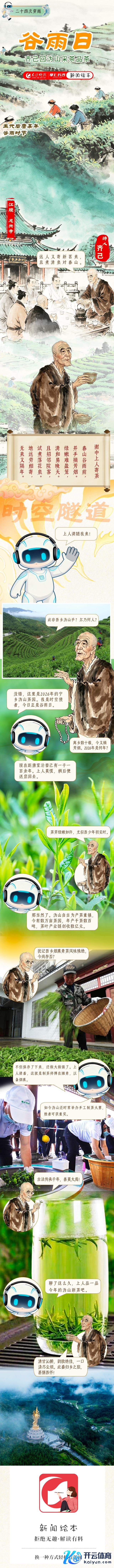 谷雨是二十四气节中的第六个气节,源自古东谈主“雨生百谷”之说。谷雨恰是采茶之时,唐代诗僧王人己晚年驻江陵(今湖北荆州)龙兴寺时,写有五律《谢中上东谈主寄茶》。作诗后,他又穿越回闾阎沩山采茶品茶,一解乡愁……