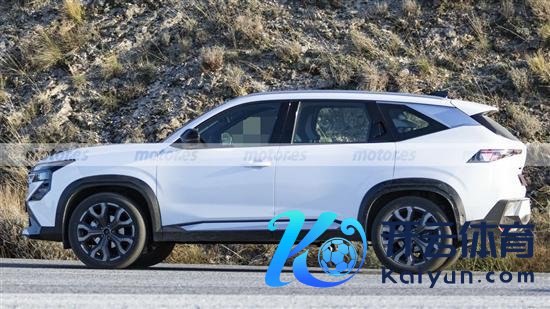 从这次曝光的谍照来看,前脸摄取雷诺全新眷属式缱绻作风,荟萃式作风的分时局前灯组造型横暴,搭配由矩阵三角元素构成的前格栅,营造出颇为动感的视觉成果。下方进气口尺寸硕大,底部配备了银色藏匿板。
