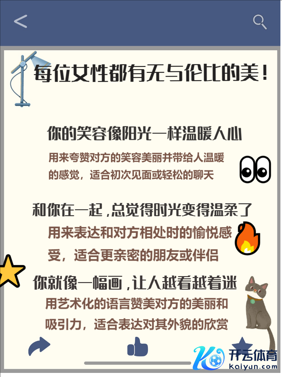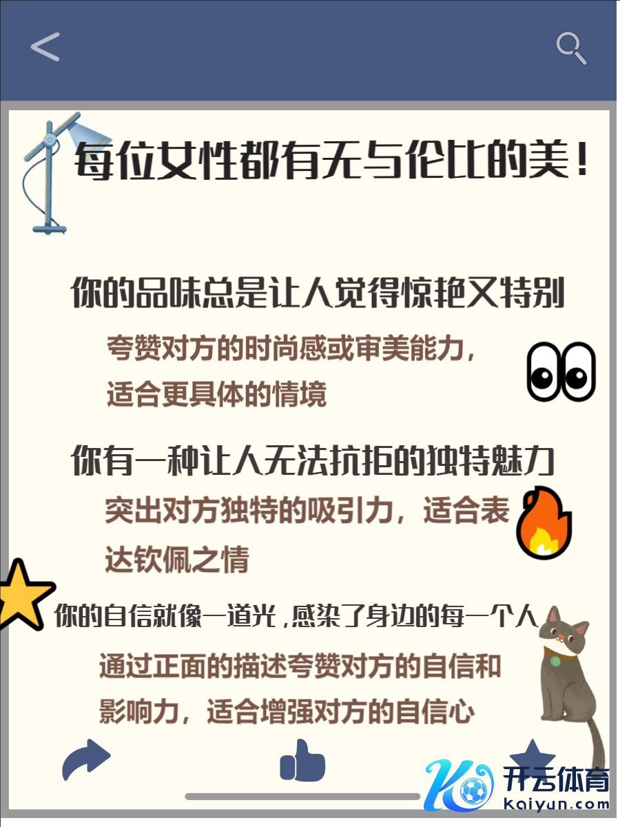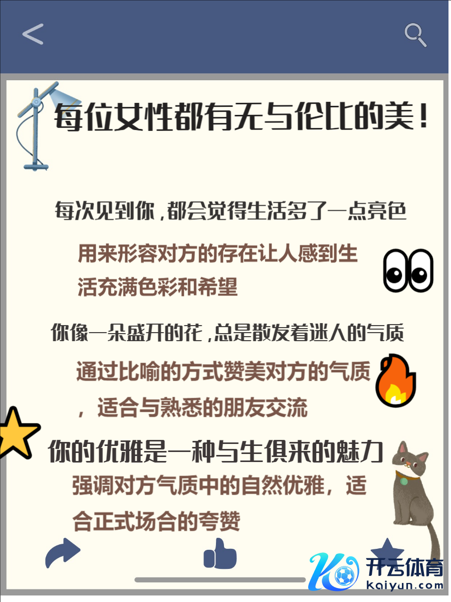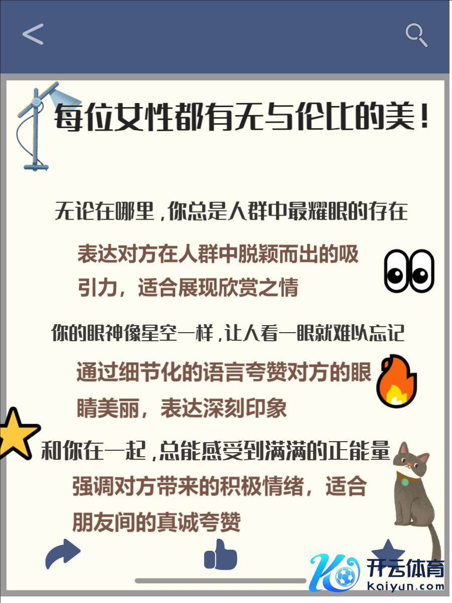 好意思好的夸赞粗略让女性感受到尊重与观赏欧洲杯体育,同期展现你的高情商。