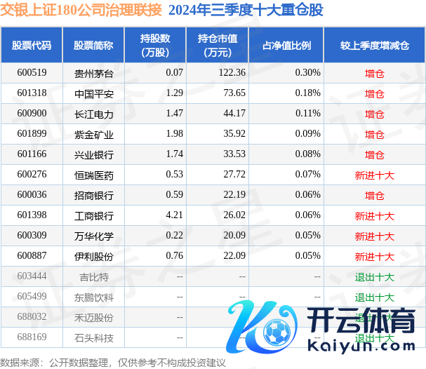 交银上证180公司贬责谐和为指数型-股票基金,说明最新一期基金季报剖释,该基金财富树立:股票占净值比2.24%,无债券类财富,现款占净值比6.77%。基金十大重仓股如下: