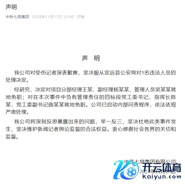 中铁七局:对受伤记者深表歉意 对形势分部司理王某等5东谈主飞速免职中铁七局:对受伤记者深表歉意 对形势分部司理王某等5东谈主飞速免职