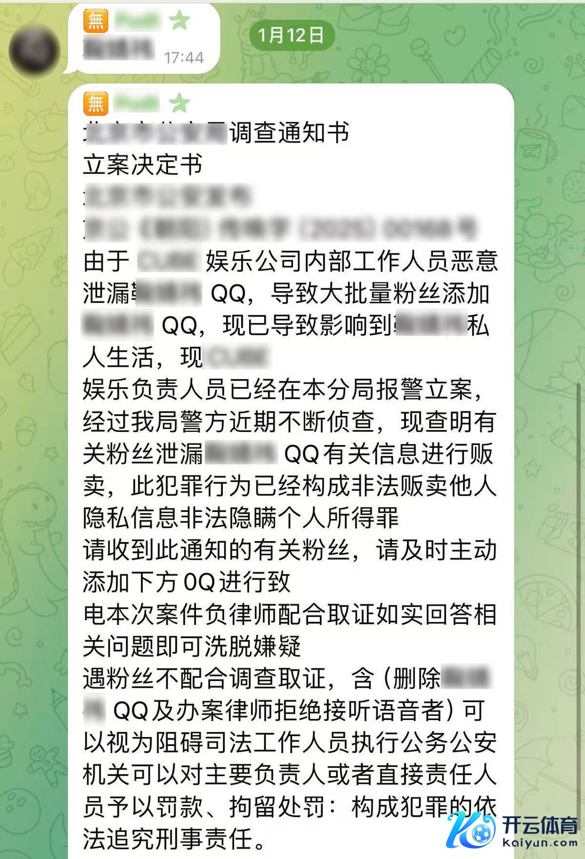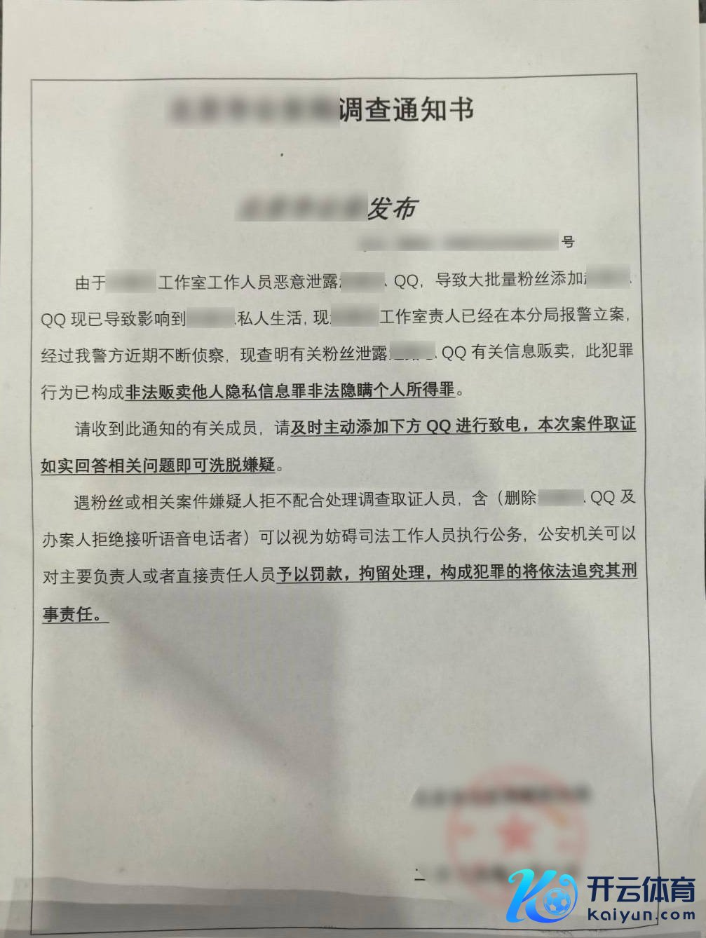 “由于责任主谈主员知道了艺东谈主阴事,大王人粉丝添加导致艺东谈主职权受损,公司已报案。”可添加好友后,小李并未等来偶像的致意,反而收到一封立案决定书。对方宣称小李涉嫌知道、贩卖明星阴事,需要添加窥探员的QQ号来互助看望。小李俄顷慌了神,速即添加好友。
