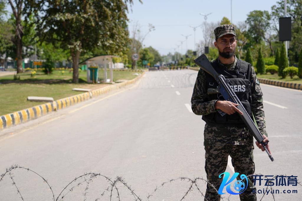 4月10日,军警在巴基斯坦伊斯兰堡告诫。新华社记者徐汉摄