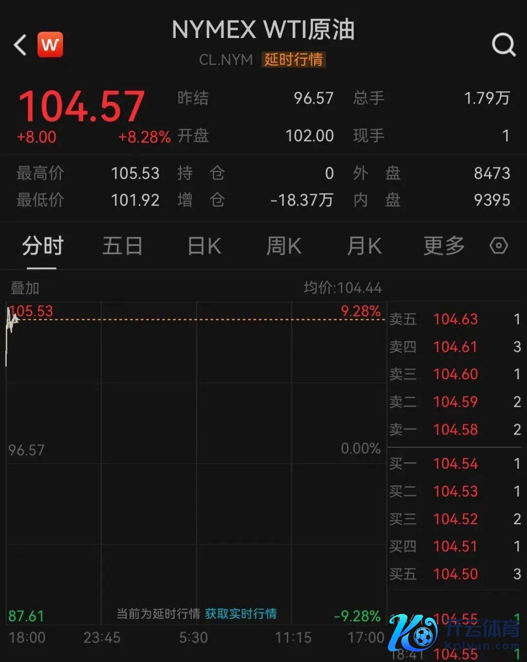 【大河财立方音书】4月13日,WTI原油期货开盘大涨,盘中冲破105好意思元/桶,日内涨幅扩大至超9%。